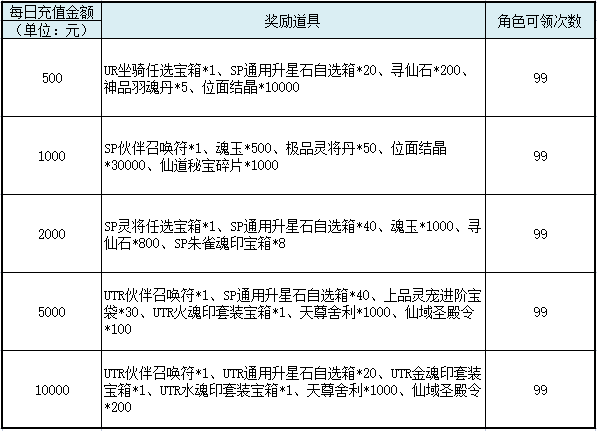 活动规则:单日大额累充,可额外申请稀有道具返利