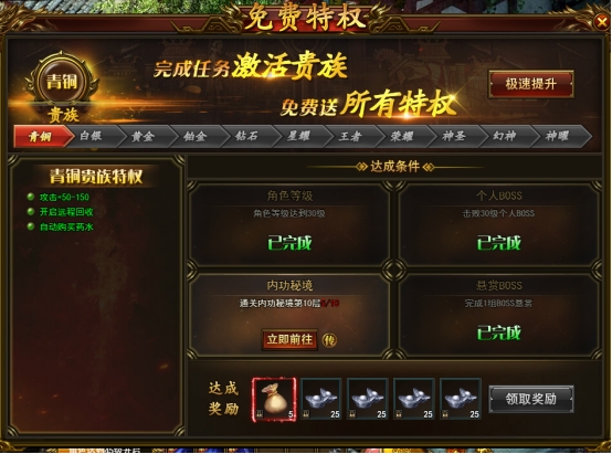 游戏内通过完成指定任务,达成条件即可提升贵族等级
