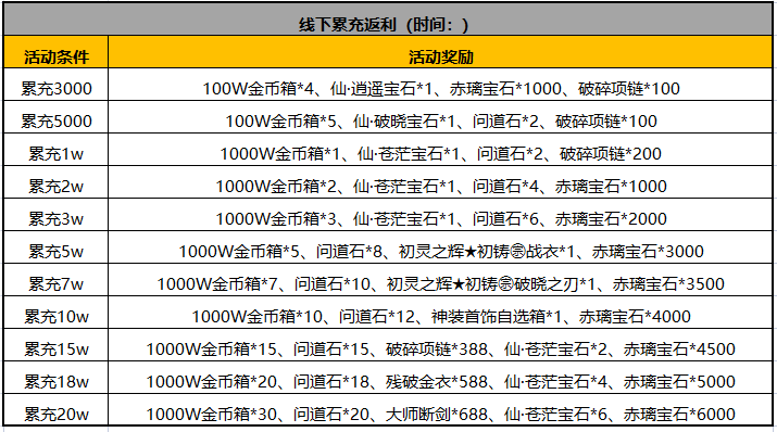 2.返利道具的种类与价值具有时效性,请注意与文档生效日期;